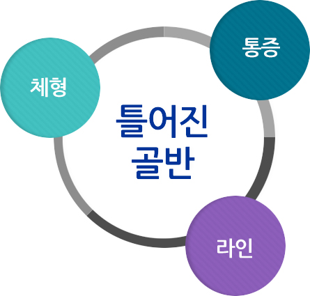 틀어진 골반은 크게 통증(요통, 골반통, 생리통, 산후풍), 체형( 휜다리, 처진엉덩이, 안짱걸음 등),